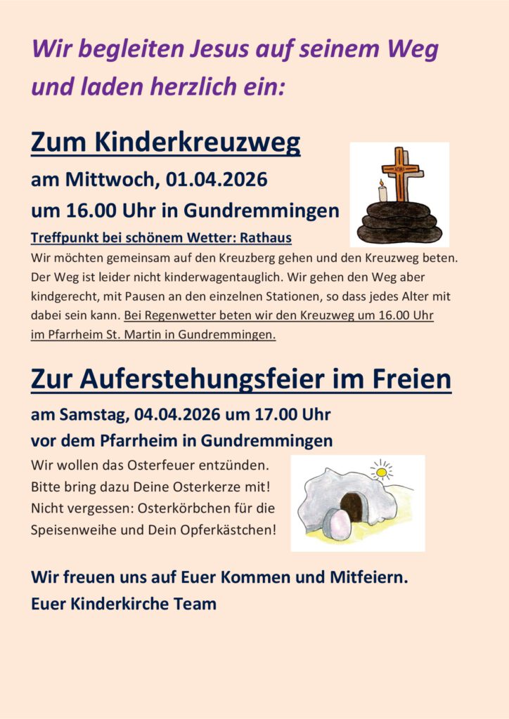 Kinderkreuzweg am Mittwoch, 01.04.26 um 16 Uhr